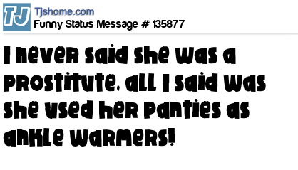 X says I never said she was a prostitute, all I said was she used her panties as ankle warmers!
