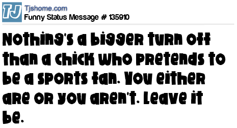 X says Nothing's a bigger turn off than a chick who pretends to be a sports fan. You either are or you aren't. Leave it be.