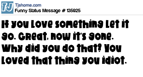 X says If you love something let it go. Great, now it's gone. Why did you do that? You loved that thing you idiot.