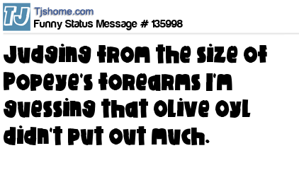 - # 186104 Judging from the size of Popeye's forearms, I'm guessing that Olive Oyl didn't put out much.