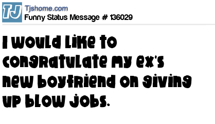 X says I would like to congratulate my ex's new boyfriend on giving up blow jobs.