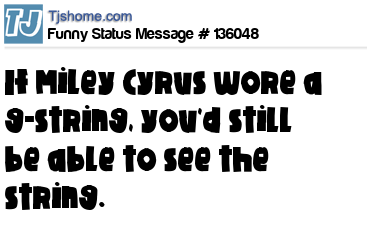 X says If Miley Cyrus wore a g-string, you'd still be able to see the string.