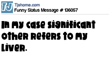 - # 131503 I had a Doc telll me I had a fatty liver. How rude! Now I always ask my Wife: "Honey, do these jeans make my liver look fat?"