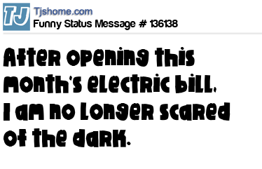 - # 118120 When I was young I was scared of the dark. Now when I see my electricity bill I am scared of the lights