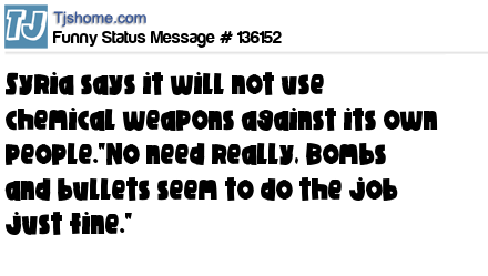 X  Syria says it will not use chemical weapons against its own people."No need really, Bombs and bullets seem to do the job just fine."