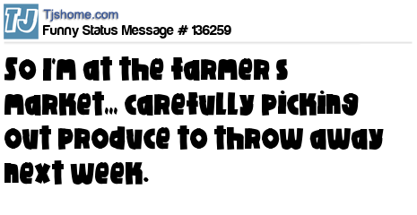 X So I'm at the farmer’s market,,, carefully picking out produce to throw away next week.