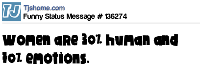 - # 104247 What's with women and emotions? Whenever I find myself getting emotional, I just drink Vodka and I am cured.