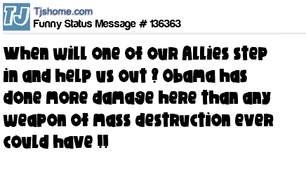 X says When will one of our Allies step in and help us out ? Obama has done more damage here than any weapon of mass destruction ever could have !!