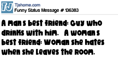 X says A man’s best friend: Guy who drinks with him. A woman’s best friend: Woman she hates when she leaves the room.