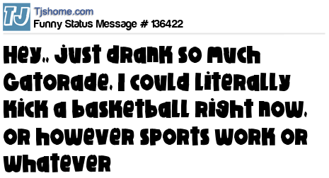 X  Hey,, just drank so much Gatorade, I could literally kick a basketball right now, or however sports work or whatever