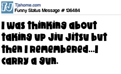 X says I was thinking about taking up Jiu Jitsu but then I remembered...I carry a gun.