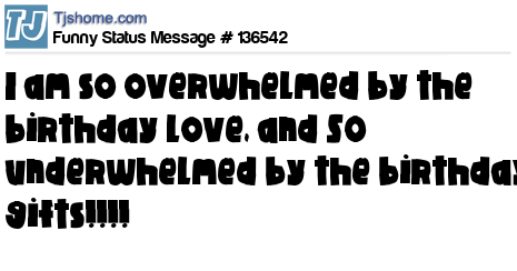 X says I am so overwhelmed by the birthday love, and SO underwhelmed by the birthday gifts!!!!
