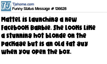X says Mattel is launching a new Facebook Barbie. She looks like a stunning hot blonde on the package but is an old fat guy when you open the box.