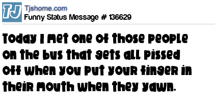X says Today I met one of those people on the bus that gets all pissed off when you put your finger in their mouth when they yawn.