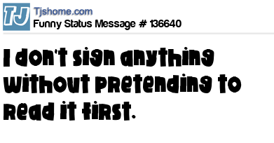 X says I don't sign anything without pretending to read it first.