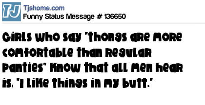 X says Girls who say "thongs are more comfortable than regular panties" know that all men hear is, "I like things in my butt."