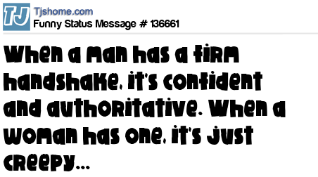 X When a man has a firm handshake, it's confident and authoritative. When a woman has one, it's just creepy...
