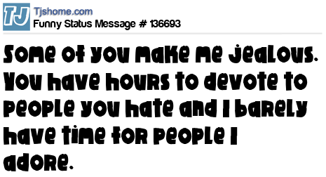 X says Some of you make me jealous. You have hours to devote to people you hate and I barely have time for people I adore.