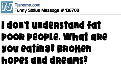 X says I don't understand fat poor people. What are you eating? Broken hopes and dreams?