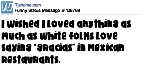 X says I wished I loved anything as much as white folks love saying "gracias" in Mexican restaurants.