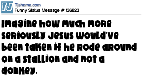 X says Imagine how much more seriously Jesus would've been taken if he rode around on a stallion and not a donkey.