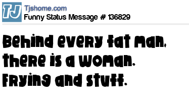 X says Behind every fat man, there is a woman. Frying and stuff.