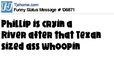X says Phillip is cryin a River after that Texan sized ass whoopin