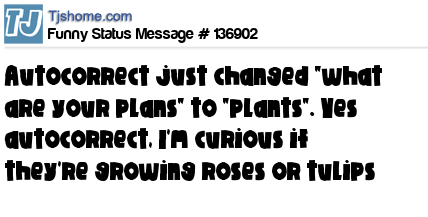 X says Autocorrect just changed "what are your plans" to "plants". Yes autocorrect, I'm curious if they're growing roses or tulips