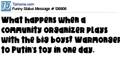X says What happens when a community organizer plays with the big boys? Warmonger to Putin's toy in one day.