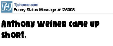 - # 134352 Anthony Weiner is still sexting... really, who cares??? However, if my last name were weiner and I had a son, I totally would have named him "Gigantic"