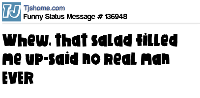 - # 201746 Waiter: Would you like a Chef's Salad, Caesar Salad or Cobb Salad salad with your ribeye? Me: None. I don't eat the food my food eats.