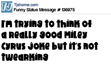 X says I'm trying to think of a really good Miley Cyrus joke but it's not twearking