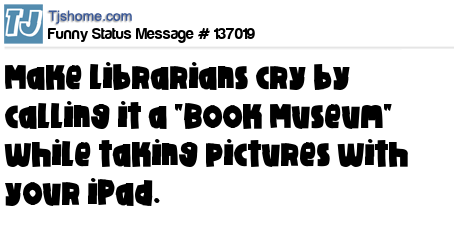 X is Make librarians cry by calling it a "Book Museum" while taking pictures with your iPad.