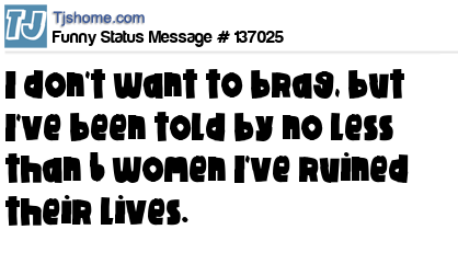 X says I don't want to brag, but I've been told by no less than 6 women I've ruined their lives.