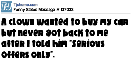 X says A clown wanted to buy my car but never got back to me after I told him "Serious Offers only".