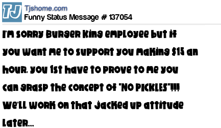 X says I'm sorry Burger King employee but if you want me to support you making $15 an hour, you 1st have to prove to me you can grasp the concept of "NO PICKLES"!!! We'll work on that jacked up attitude later...