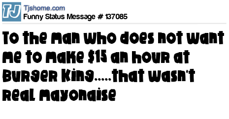 X says To the man who does not want me to make $15 an hour at Burger King.....that wasn't real mayonaise