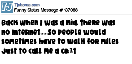 X says Back when I was a kid, there was no internet.....So people would sometimes have to walk for miles just to call me a c&%t