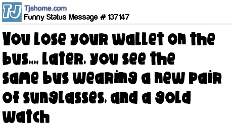 X You lose your wallet on the bus,,,, later, you see the same bus wearing a new pair of sunglasses, and a gold watch