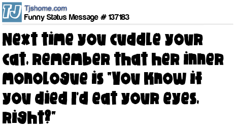 X says Next time you cuddle your cat, remember that her inner monologue is "You know if you died I'd eat your eyes, right?"