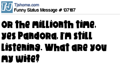 X says or the millionth time, yes Pandora, I'm still listening. What are you my wife?