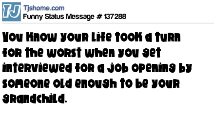 X says You know your life took a turn for the worst when you get interviewed for a job opening by someone old enough to be your grandchild.