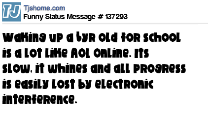 X says Waking up a 6yr old for school is a lot like AOL Online. Its slow, it whines and all progress is easily lost by electronic interference.