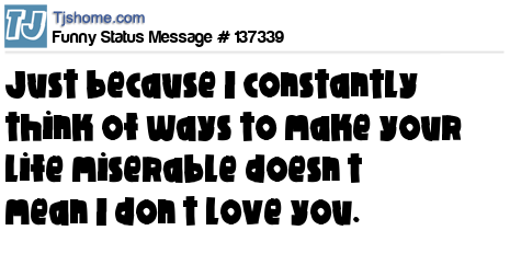 X says Just because I constantly think of ways to make your life miserable doesn’t mean I don’t love you.