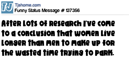 X says After lots of research I've come to a conclusion that women live longer than men to make up for the wasted time trying to park.