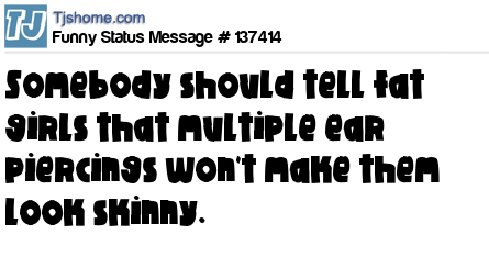 X says Somebody should tell fat girls that multiple ear piercings won't make them look skinny.