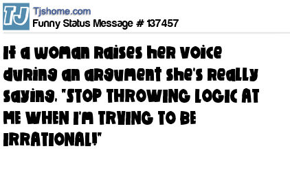 X says If a woman raises her voice during an argument she's really saying, "STOP THROWING LOGIC AT ME WHEN I'm TRYING TO BE IRRATIONAL!"