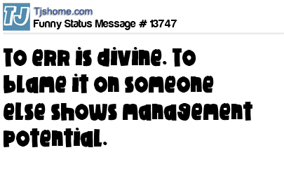 - # 39689 To err is human, to blame it on somebody else shows management potential.