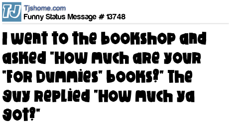 X I went to the bookshop and asked "How much are your "For Dummies" books?" The guy replied "How much ya got?"
