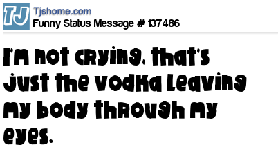 X says I'm not crying, that's just the vodka leaving my body through my eyes.